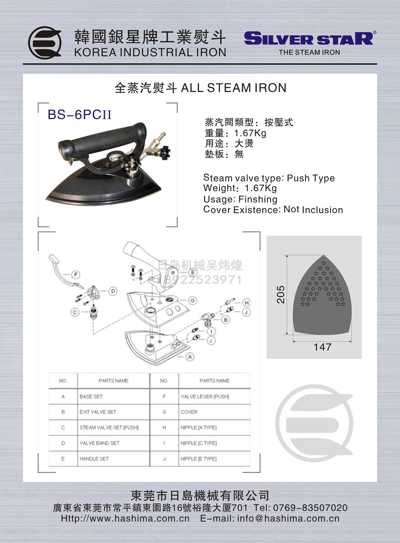 產(chǎn)品名 SILVER STAR銀星牌全蒸汽燙斗/熨斗