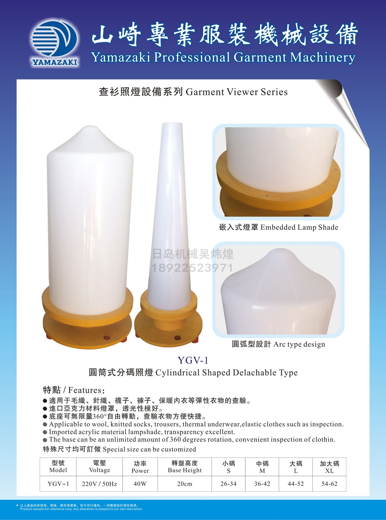 YAMAZAKI圓筒式分碼查衫照燈|查衫燈
